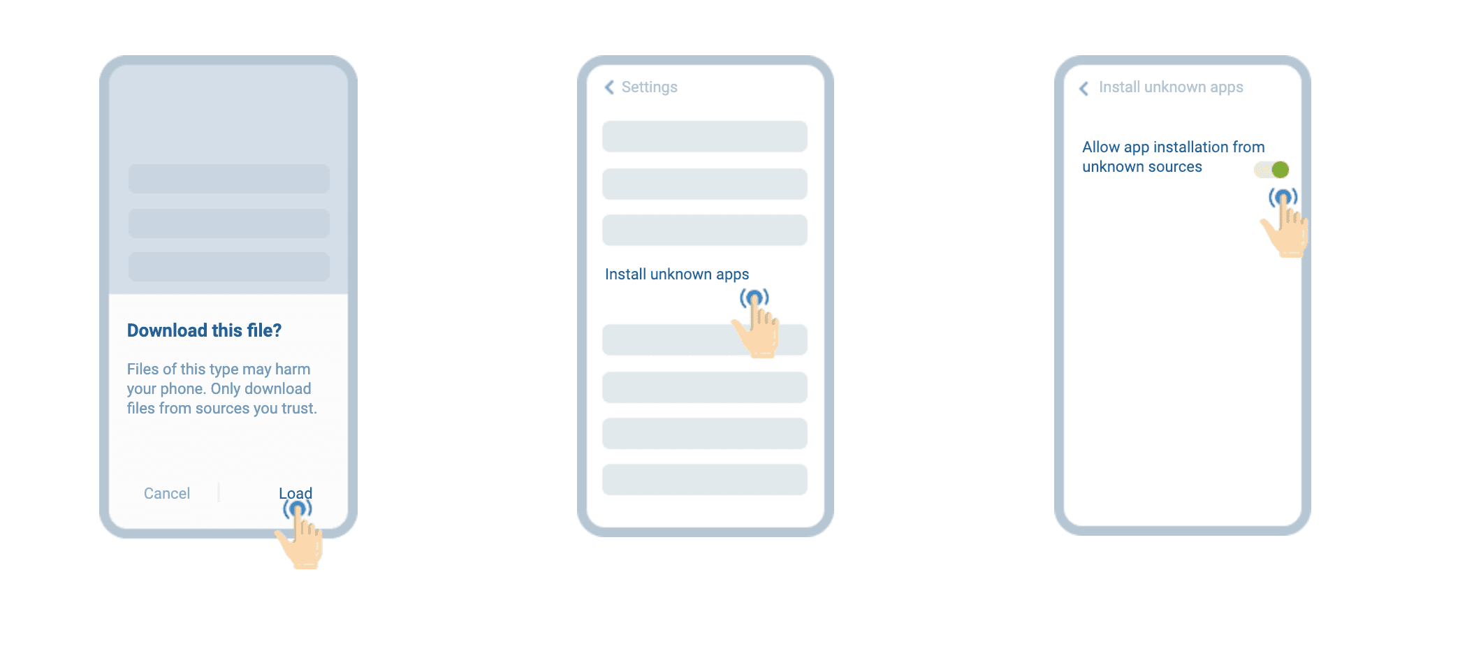 - Nezināmi avoti: pārliecinieties, vai ierīces iestatījumos esat iespējojis opciju “Nezināmi avoti”. Bez tā Android neļaus instalēt lietotnes no citiem avotiem, izņemot Google Play veikalu.